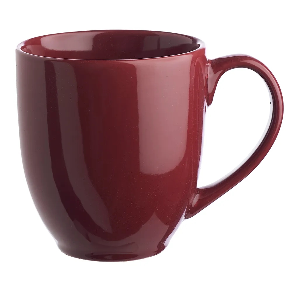 This 16 oz. bistro coffee mug makes a great gift for morning people! Perfect for trade shows, gift shops, cafes and corporate events, this wide ceramic mug holds well and is ideal for everyday use with your favorite coffee or tea. It features a smooth rim, glossy finish, curved grip and a tapered bottom. Available in several different colors to choose from, have your company name or logo imprinted on the surface for maximum brand visibility! Recommended Hand Wash Only.