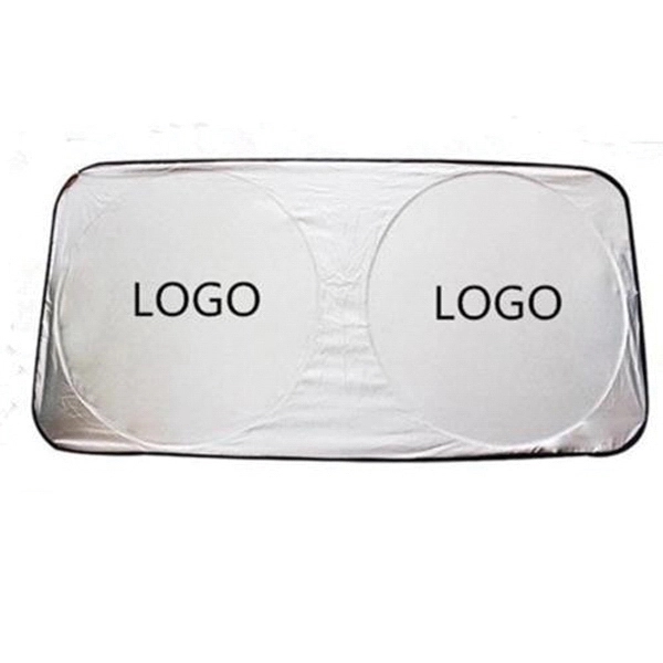 This two-panel Car Sun Shade reflects the sun to help keep your vehicle interior cooler. Huge shade offers full windshield coverage and extra high-visibility advertising space for your business. The handy window shade collapses to approximately 10% of its original size. 59" L x 28" W.