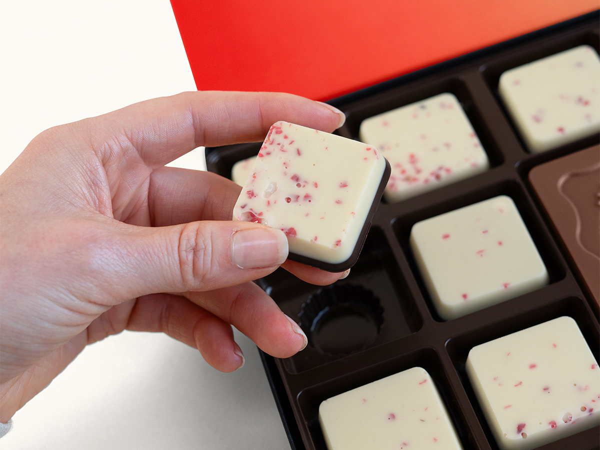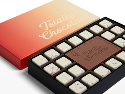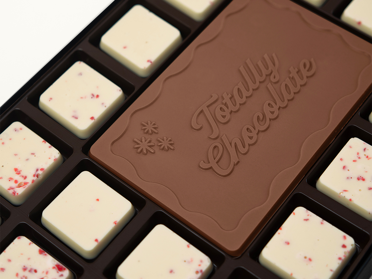 Celebrate the season with this exquisite 23-piece peppermint bark collection. Each bite layers rich, creamy white chocolate over smooth dark chocolate, infused with cool, refreshing peppermint and topped with crushed candy cane pieces. Beautifully presented with your custom branding, this festive customer favorite is the perfect gift for clients, events, and holiday celebrations that deserve something truly special.