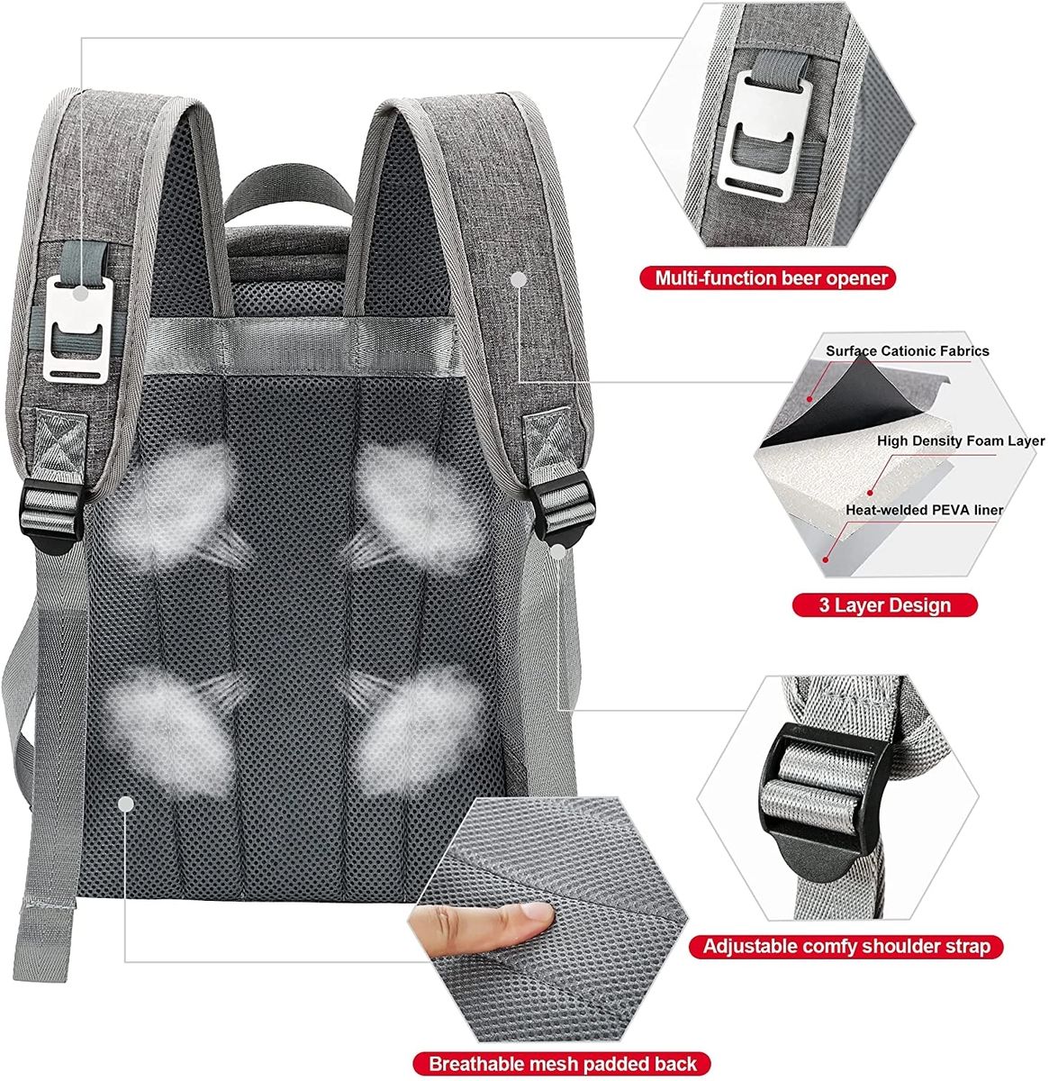 Additional InformationBackpack 20 Cans Leakproof Insulated Backpack Cooler Lightweight Soft Portable Lunch Bag for Men Women Camping Hiking Picnics